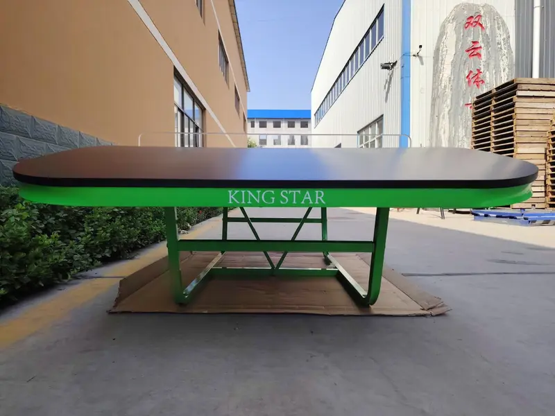 השולחן בנוי בצורת שולחן פינג פונג כדור רגל מקומר שמיועד למשחק עם כדור-רגל רגיל